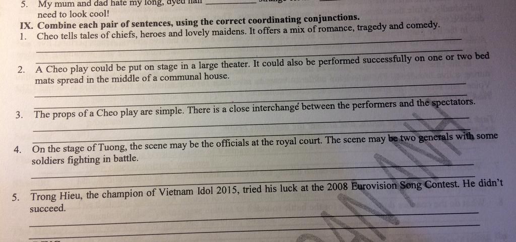 Sử dụng liên từ "and" để bổ sung thông tin ("Chèo kể những câu chuyện..." và còn "mang đến sự kết hợp...")