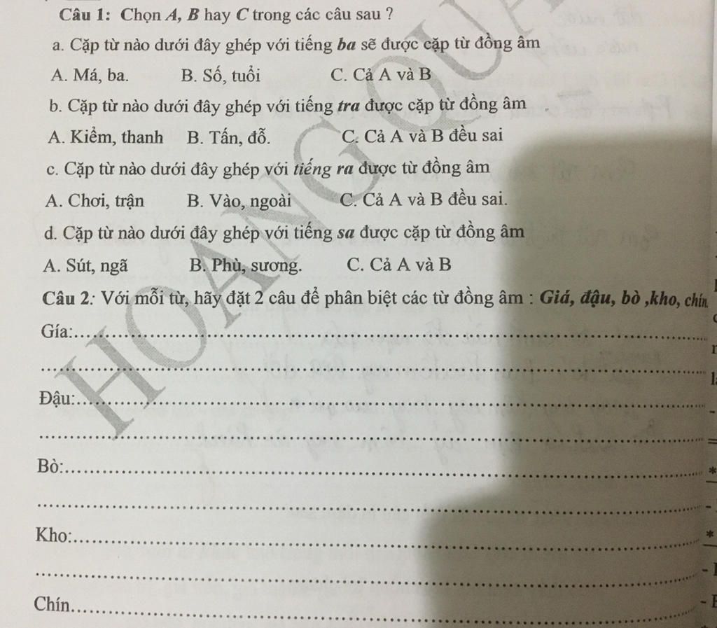 `a.` Cặp từ nào dưới đây ghép với tiếng "`b``a`" sẽ được cặp từ đồng âm