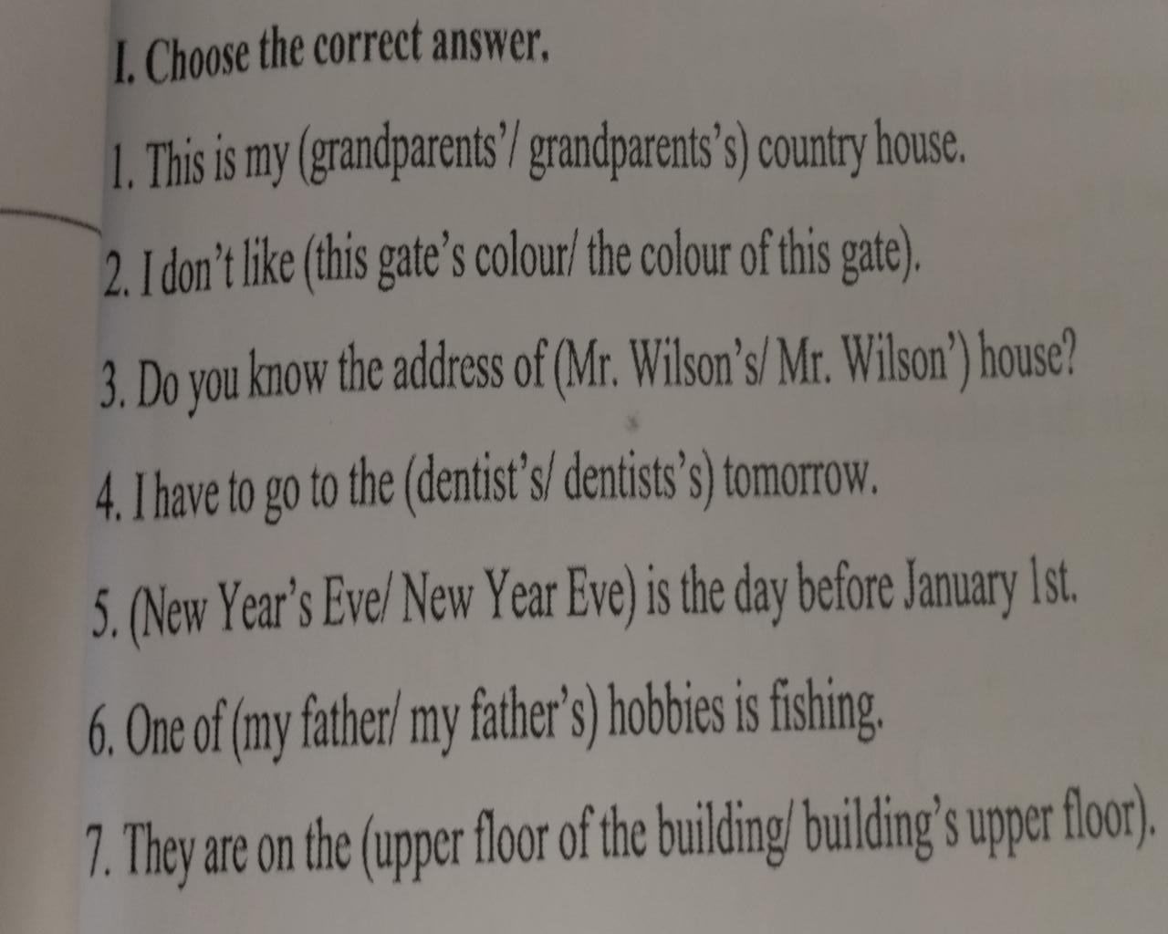 4. I have to go to the (dentist's/ dentists's) tomorrow.