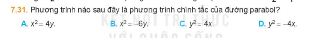 Do đó phương trình chính tắc của đường parabol là ${{y}^{2}}=4x$.