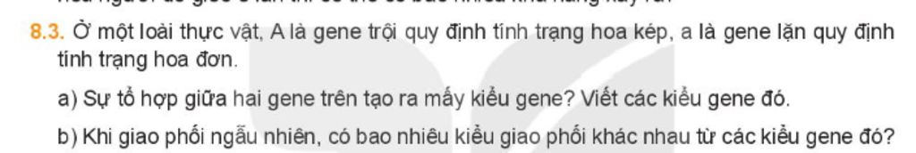 8.3. Ở một loài thực vật, A là gene trội quy định tính trạng hoa kép, a là gene lặn quy định