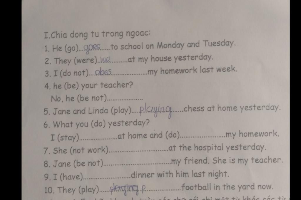 5) Jane and Linda played chess at home yesterday.