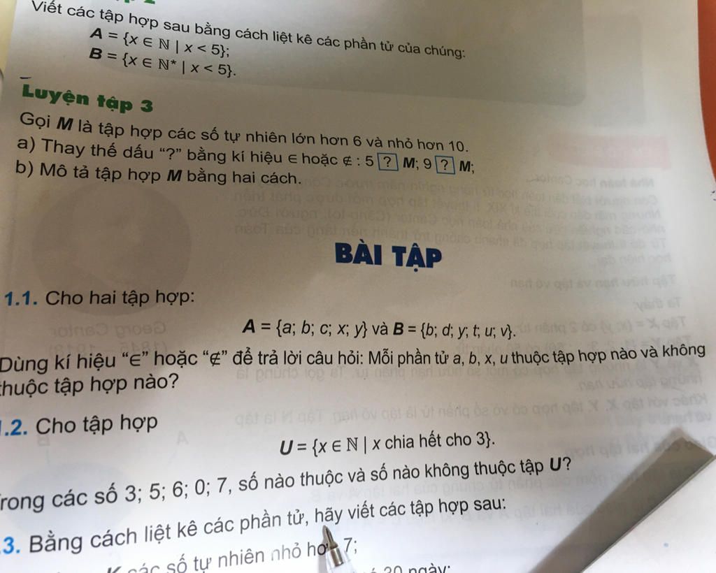 Gọi M là tập hợp các số tự nhiên lớn hơn 6 và nhỏ hơn 10.