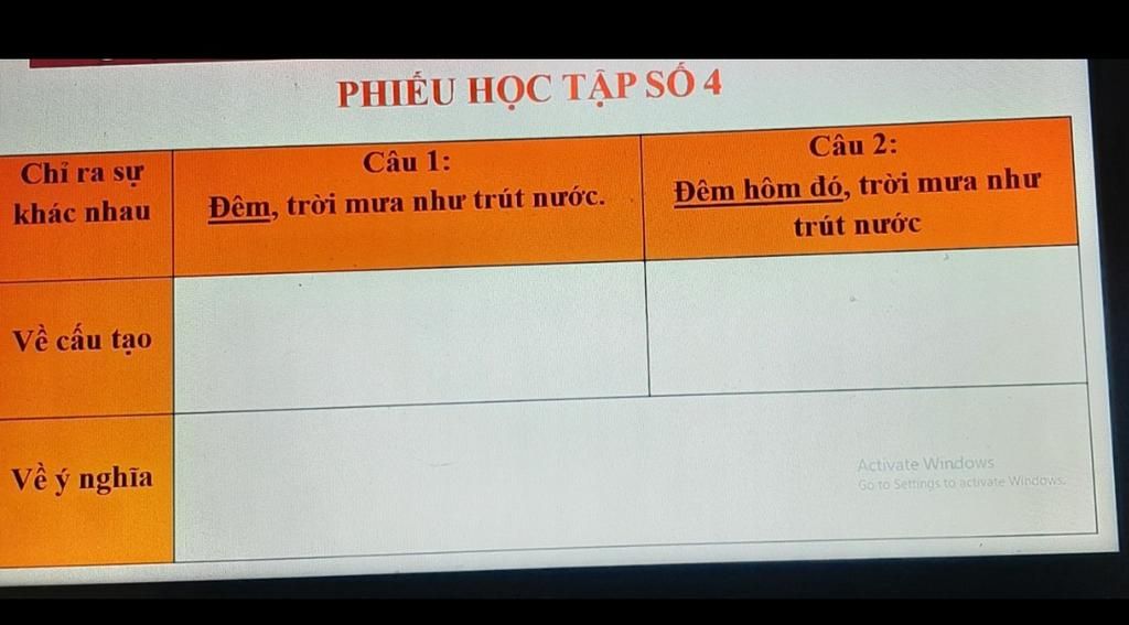 `-`Về cấu tạo, trạng ngữ" Đêm" trong câu 1 là một từ đơn; trạng ngữ" Đêm hôm đó" là một cụm danh từ.