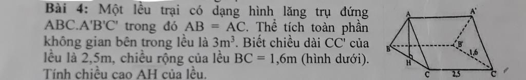 $\to V=CC'\cdot S_{ABC}=CC'\cdot\dfrac12AH\cdot BC$