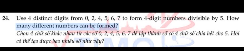 Có `2` cách chọn hàng đơn vị ( `0` và `5` ) Vì số `\vdots 5` cần có tận cùng là `0; 5`