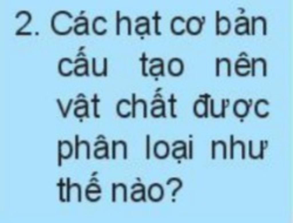 - Hạt sơ cấp: những hạt không thể chia nhỏ hơn được nữa.