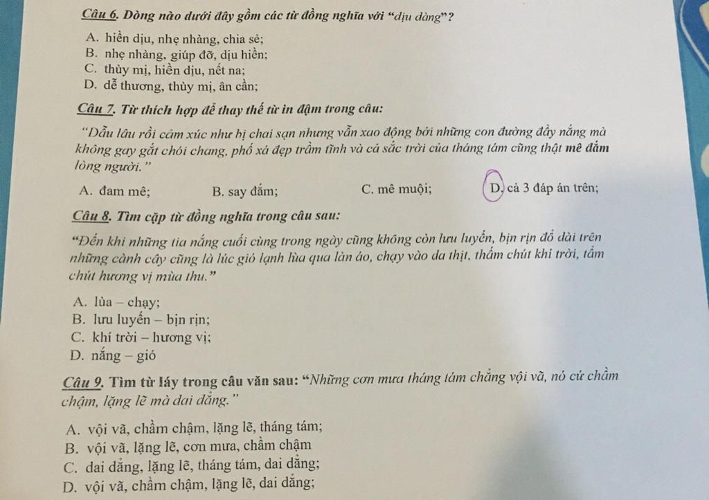 `D.` Vội vã, chầm chậm, lặng lẽ, dai dẳng.