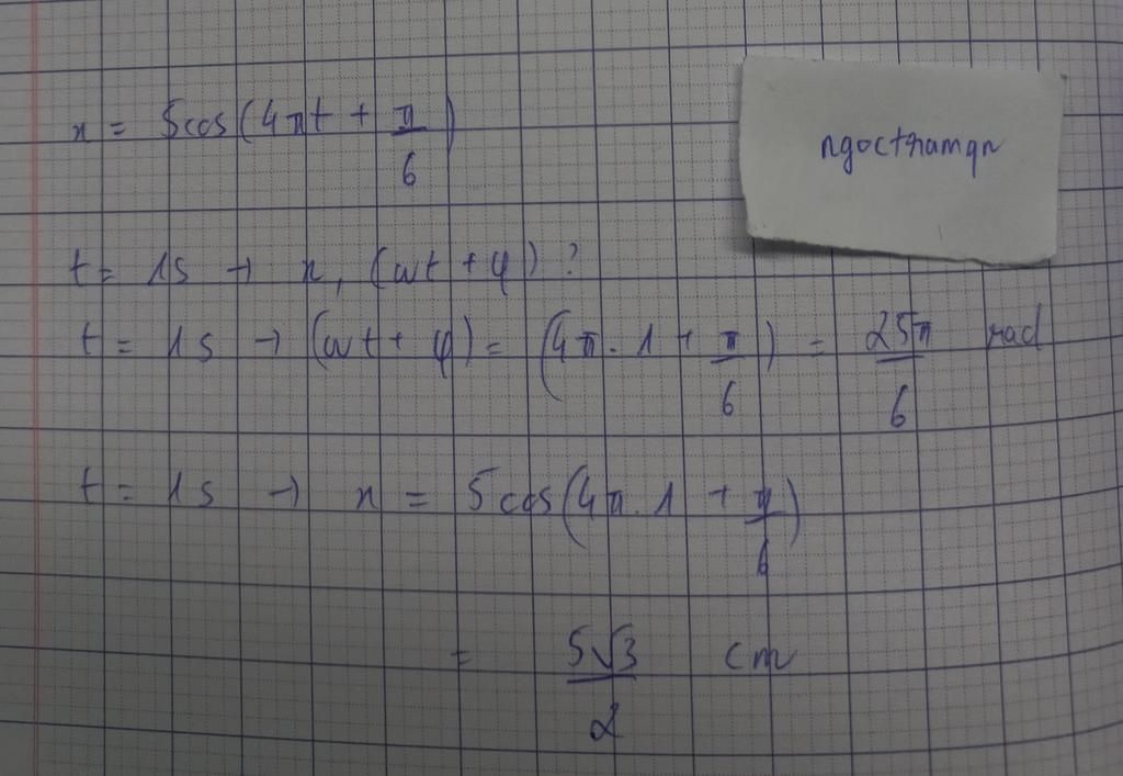 li độ là x và x= 5.cos(4.π.1+π/6)=4,87
