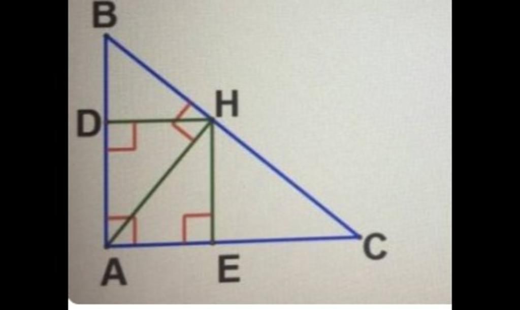 `a)` Áp dụng hệ thức lượng cho `\Delta ABH` vuông tại H có đường cao DH và `\Delta AHC` vuông tại H có đường cao HE