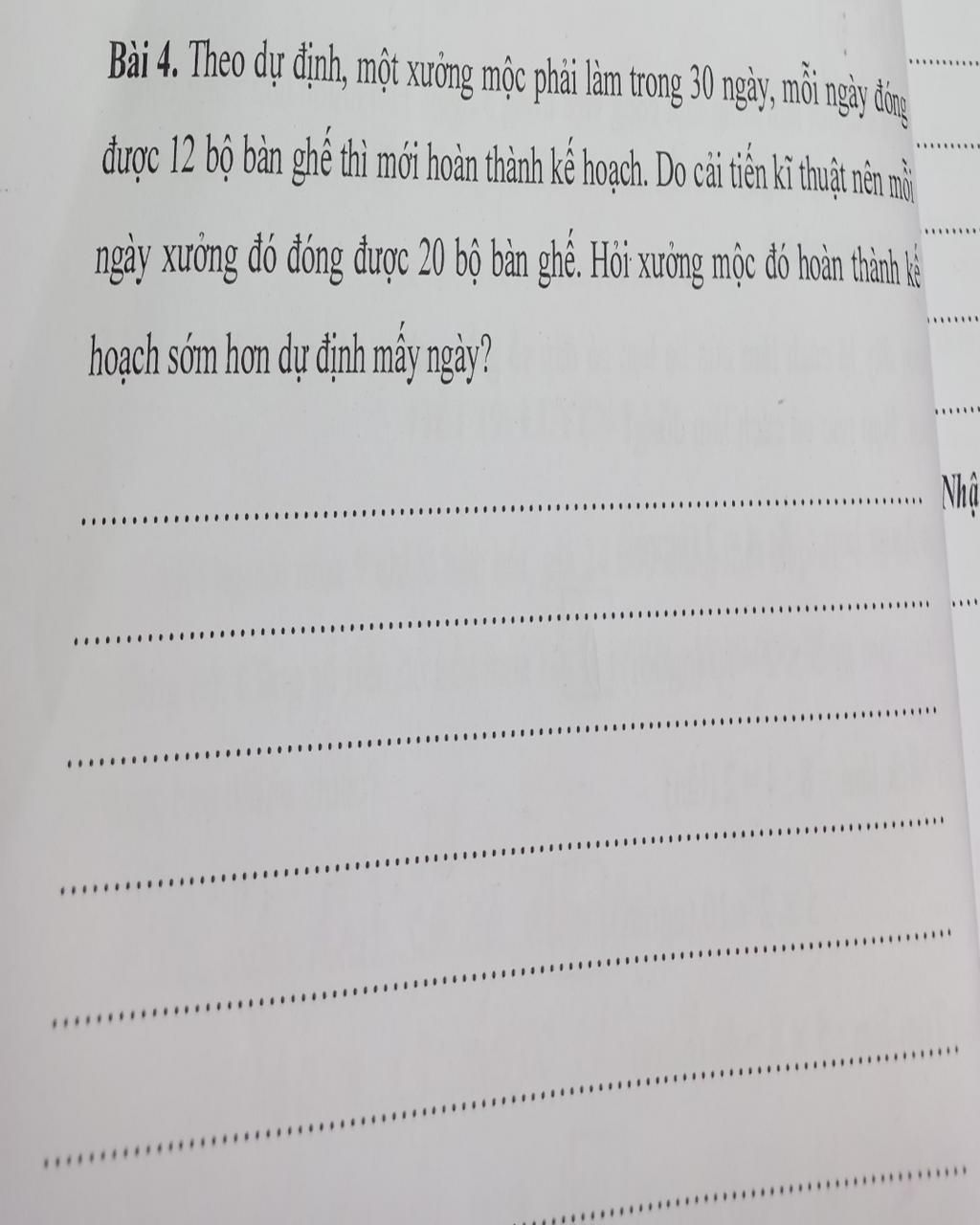 Xưởng mộc đó hoàn thành công việc sớm hơn dự định số ngày là: