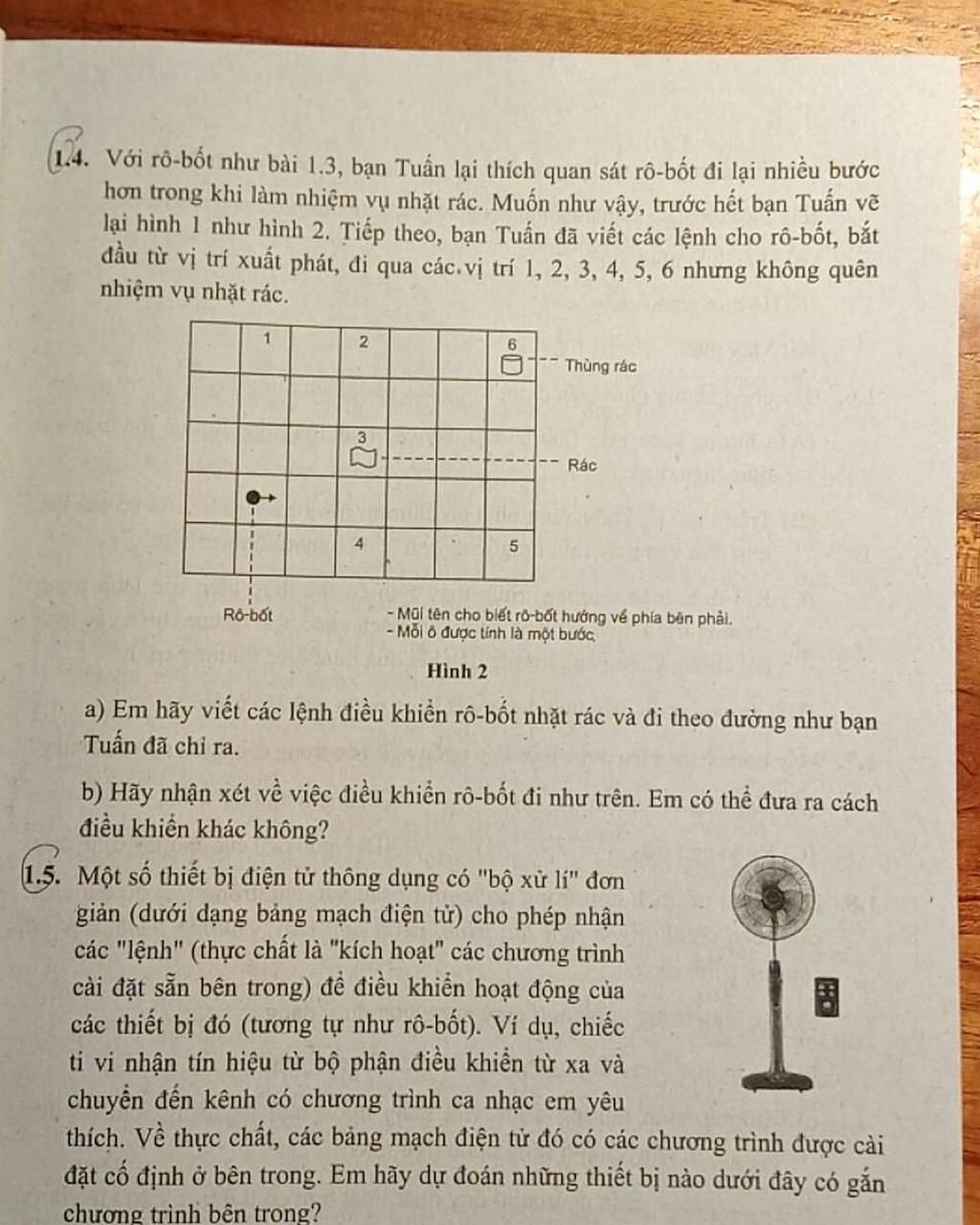 1.4. Với rô-bốt như bài 1.3, bạn Tuấn lại thích quan sát rô-bốt đi lại nhiều bước