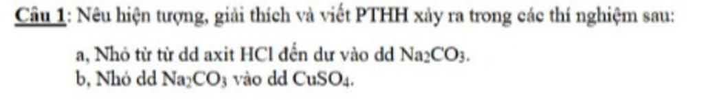 b. nhỏ dd na2co3 vào dd cuso4 có xuất hiện kết tủa xanh lam
