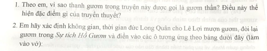 1. Theo em, vì sao thanh gươm trong truyện này được gọi là gươm thần? Điều này thể