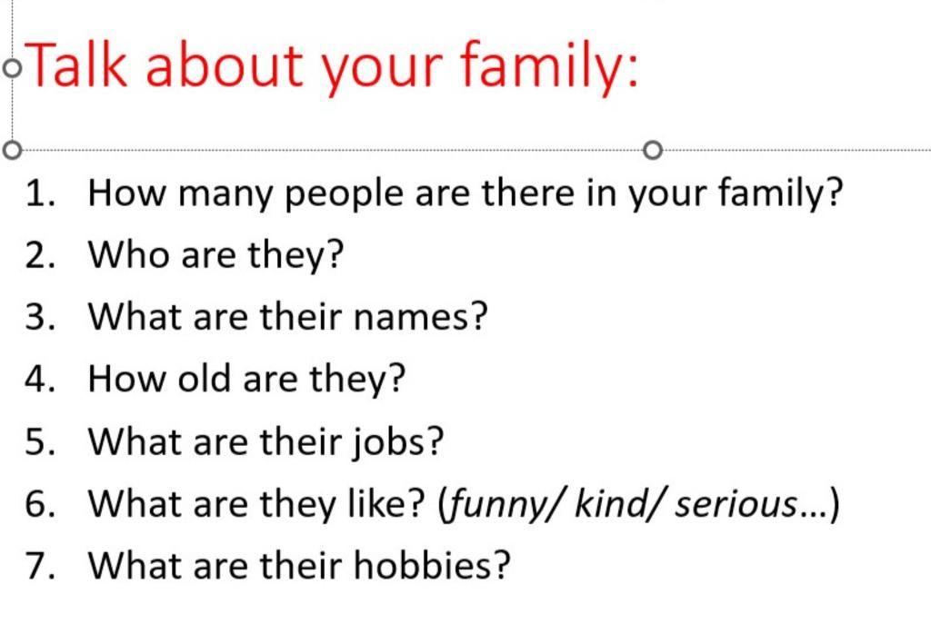 1. There are five people in my family: có 5 người trong gia đình tôi