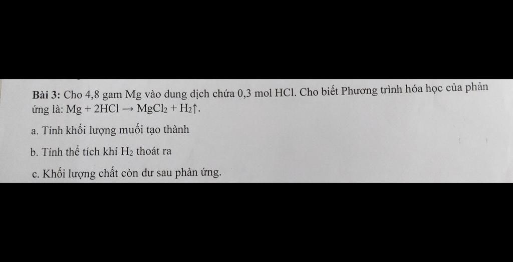 a, Theo pt: `n_(MgCl_2)=n_(HCl) \times `1/2 =0,3\times1/2=0,15` `(mol)`