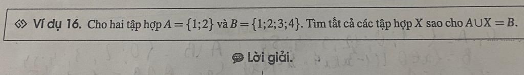 `A = {1 ; 2}` và `B = {1 ; 2 ; 3 ; 4}`