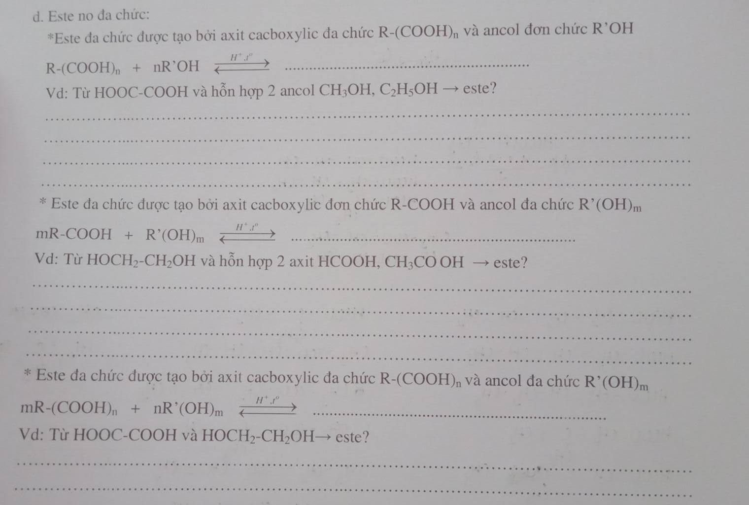 *Este đa chức được tạo bởi axit cacboxylic đa chức R-(COOH), và ancol đơn chức R’OH