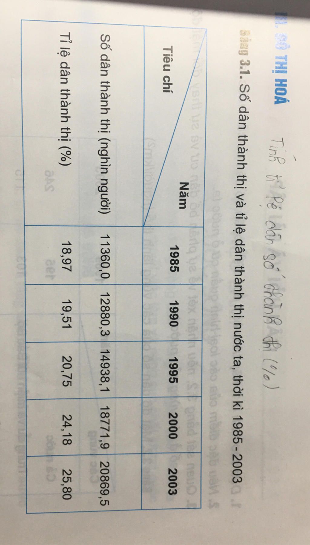 Nếu có cả bảng số liệu về dân số bao gồm thành thị và nông thôn với tổng số . Thì tính tính tỉ lệ thành thị = dân số thành thị : tổng số = %. Thì không phải tổng số dân đó quy về % à