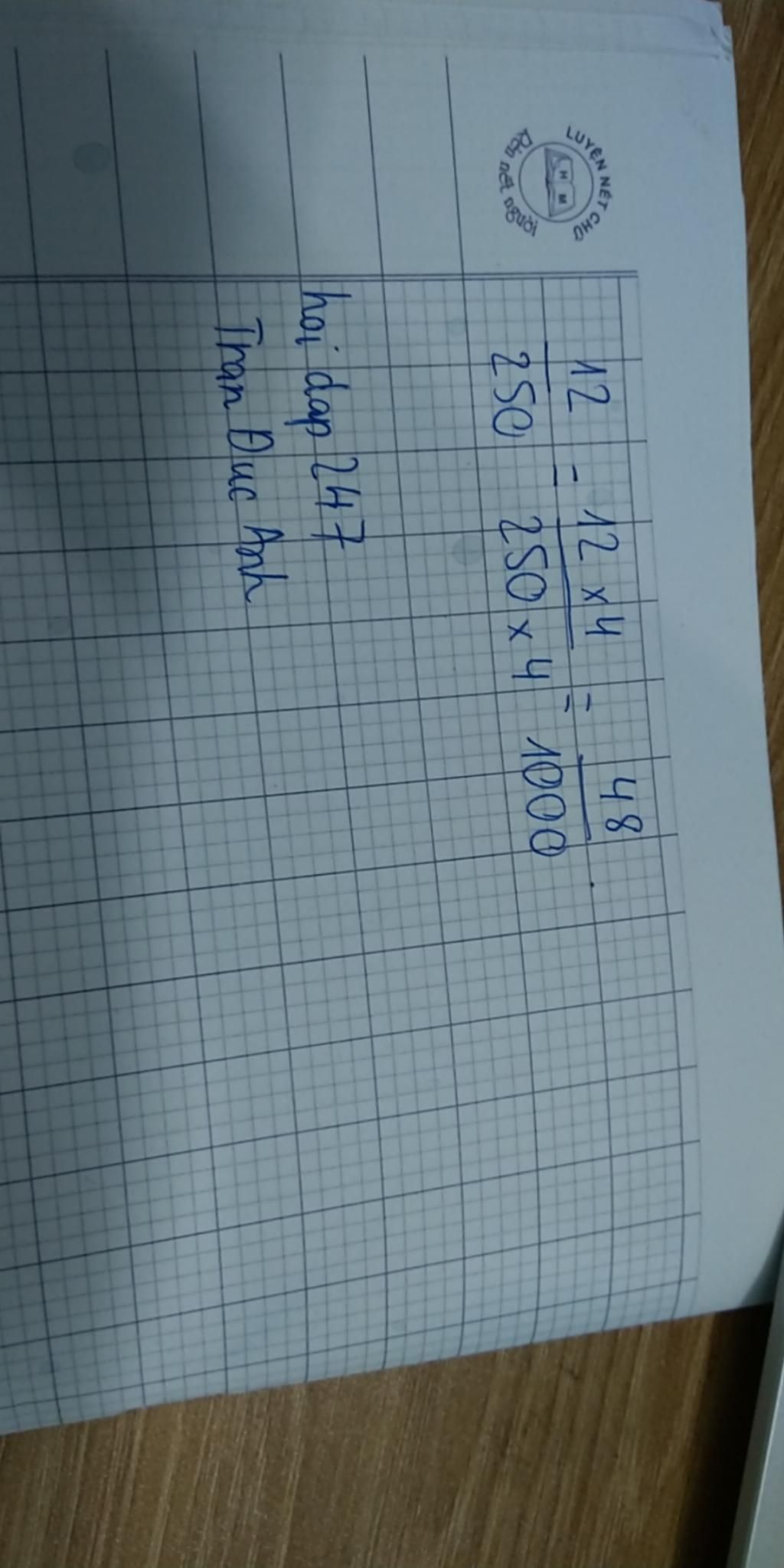 Đề bài : `12/250` chuyển thành phân số thập phân .