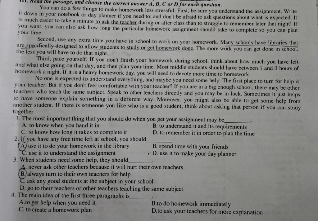 Read the passage, and choose the correct answer A, B, C or D for each question.