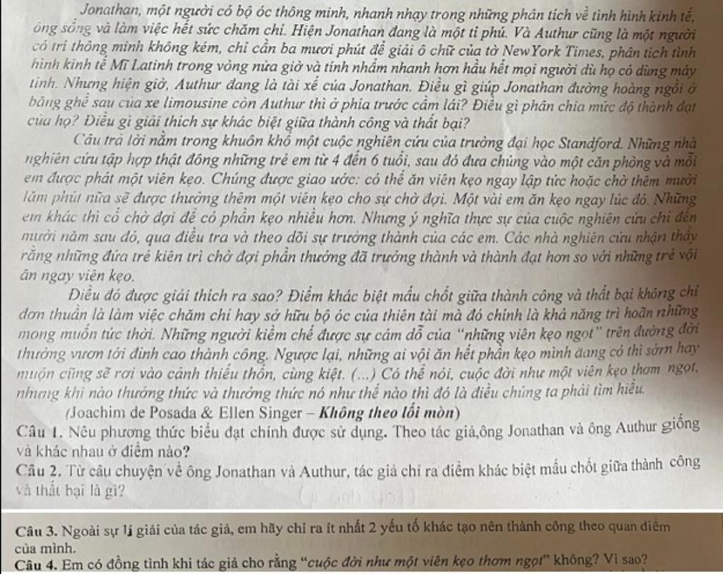 Câu 2: Từ câu chuyện về ông Johnathan và Authur, tác giả chỉ ra điểm khác biệt mấu chốt giữa thành công và thất bại là gì?