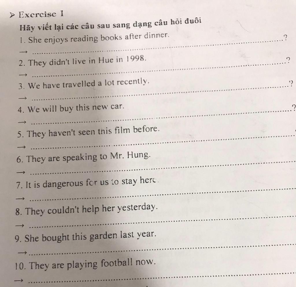 Hãy viết lại các câu sau sang dạng câu hỏi đuôi