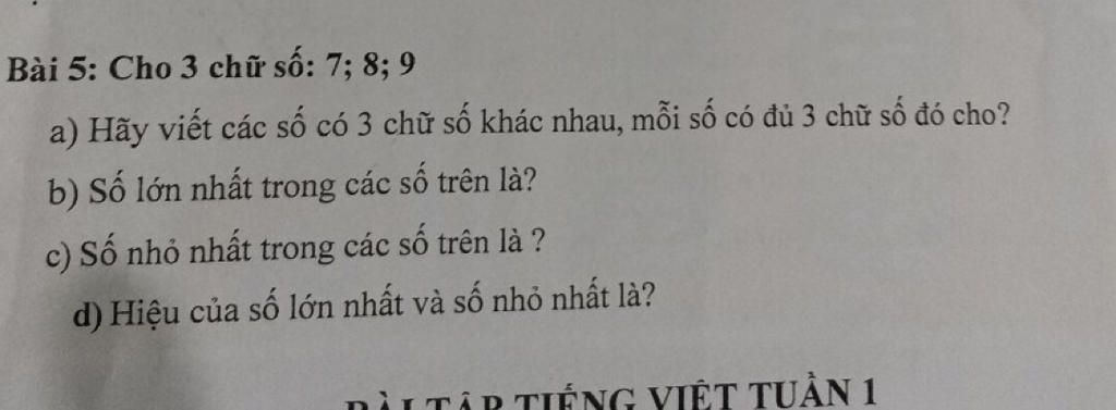 d) Hiệu của số lớn nhất và số nhỏ nhất là: