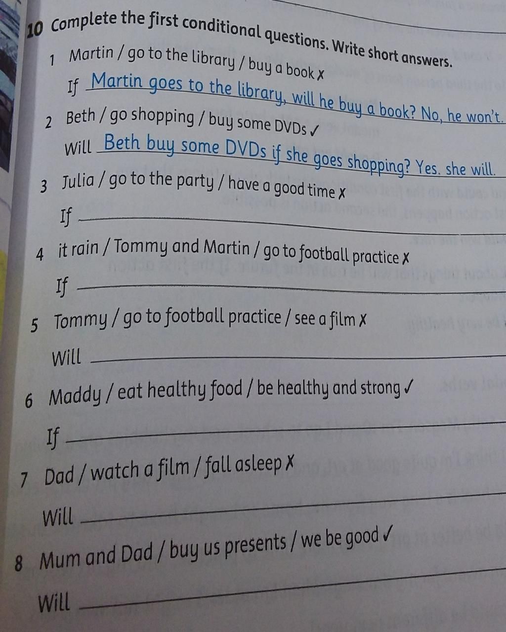 4, If it rains, Tom and Martin will go to football practice- No they won't
