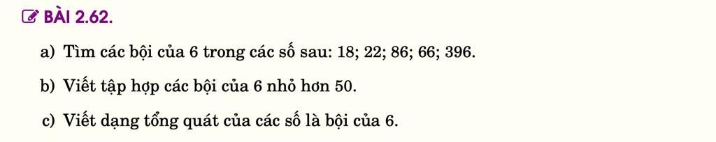 c, Các số là bội của 6 có dạng tổng quát là 6k với k thuộc N