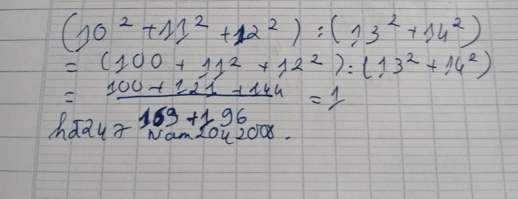`=` $\dfrac{100+11^2+12^2}{13^2+14^2}$