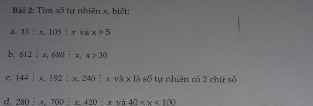 A) => x thuộc ƯC (35;105) x >5