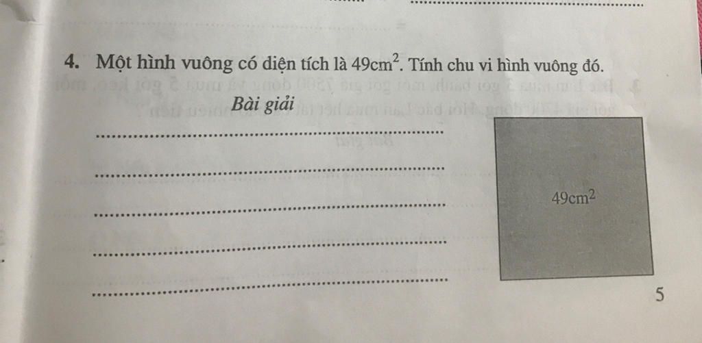 `49=7` `xx` `7` Suy ra `7` sẽ là cạnh của hình vuông đó.
