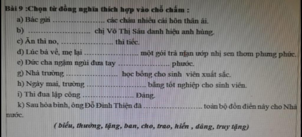 d) Lúc bà về, mẹ lại biếu một gói trà mạn ướp nhị sen thơm phưng phức.