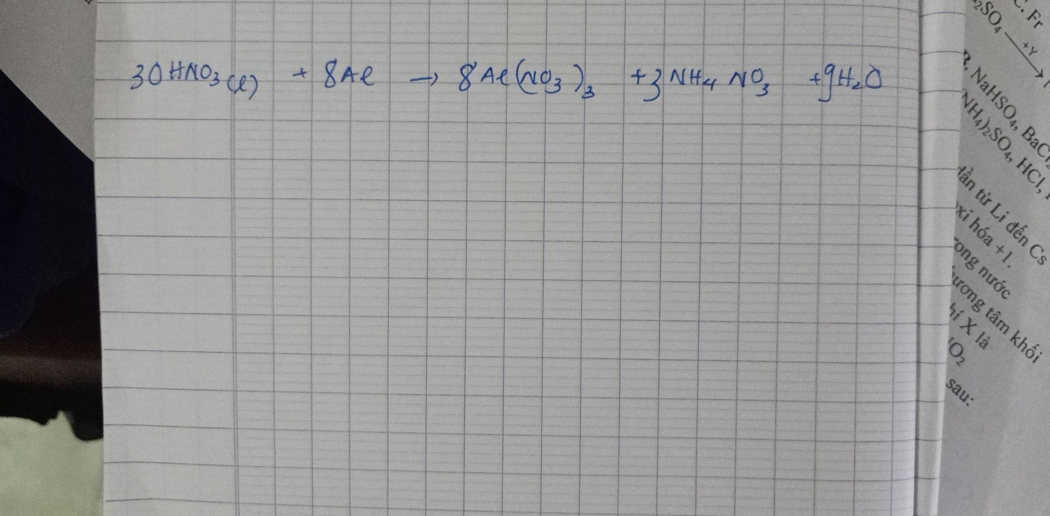 8Al + 30HNO3 → 8Al(NO3)3 + 3NH4NO3 + 9H2O