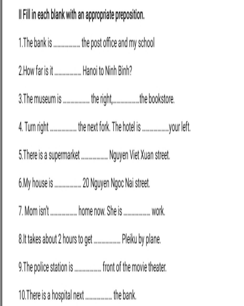 Il Fill in each blank with an appropriate preposition.