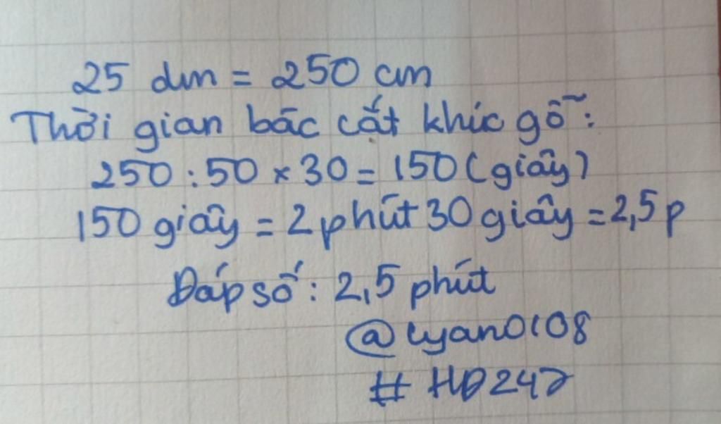 $\text{Thời gian bác NGọc cắt khúc gỗ là:}$