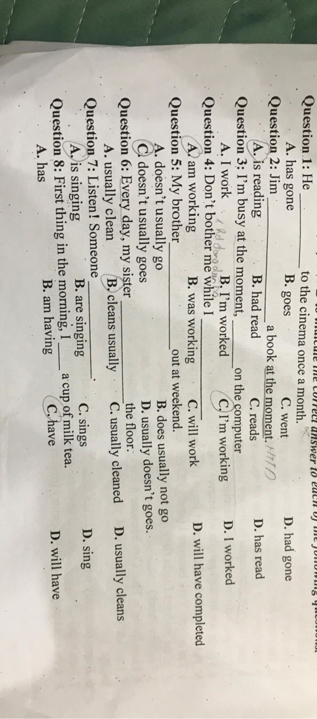 to the cinema once a month.