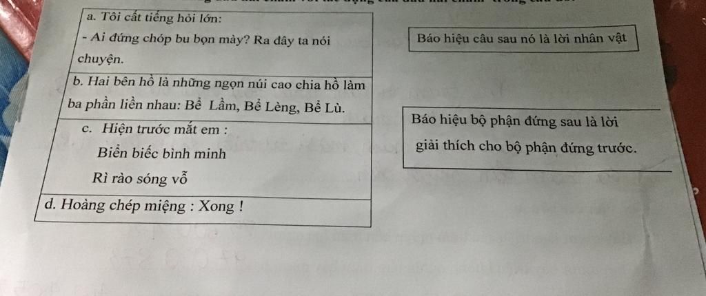 b.Báo hiệu cho bộ phận đứng sau là lời giải thích cho bộ phận đứng trước