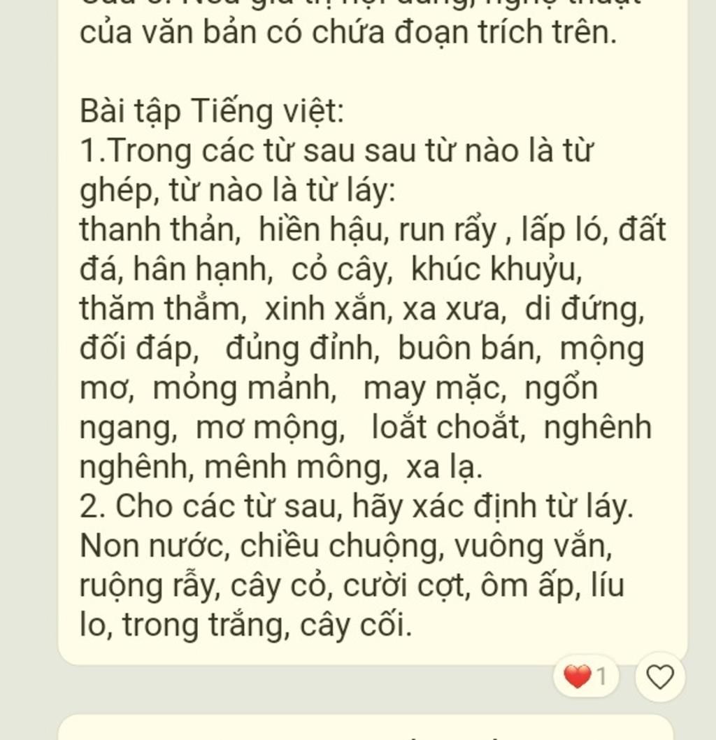 `+)`Từ láy:từ láy là những từ không có nghĩa hay có thể nói là không thể ghép với từ nào hết.