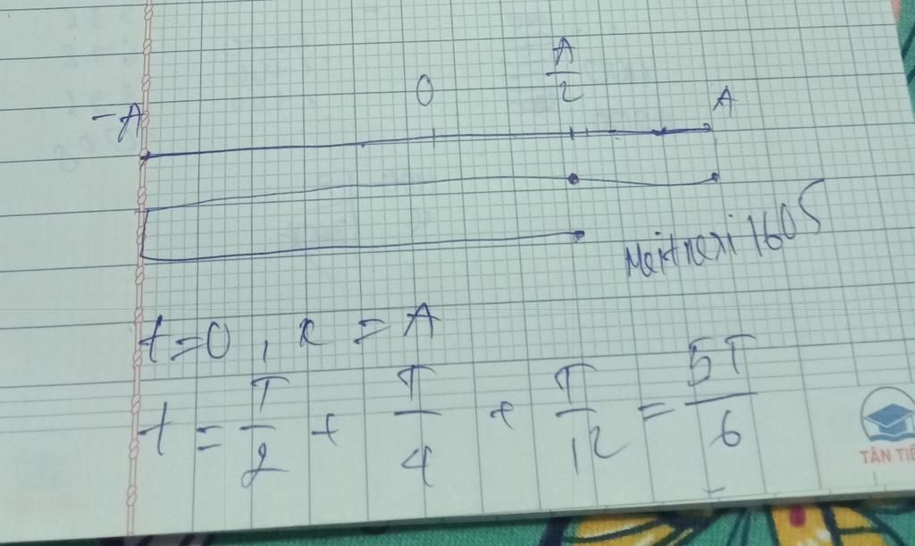 \(t = \dfrac{\alpha }{\omega } = \dfrac{{\dfrac{{5\pi }}{3}}}{{2\pi }} = \dfrac{5}{6}\left( s \right)\)