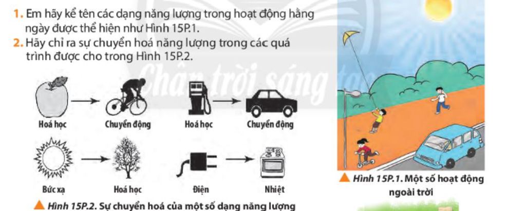 Các dạng năng lượng trong hoạt động hàng ngày: quang năng, cơ năng, điện năng, nhiệt năng, hóa năng.