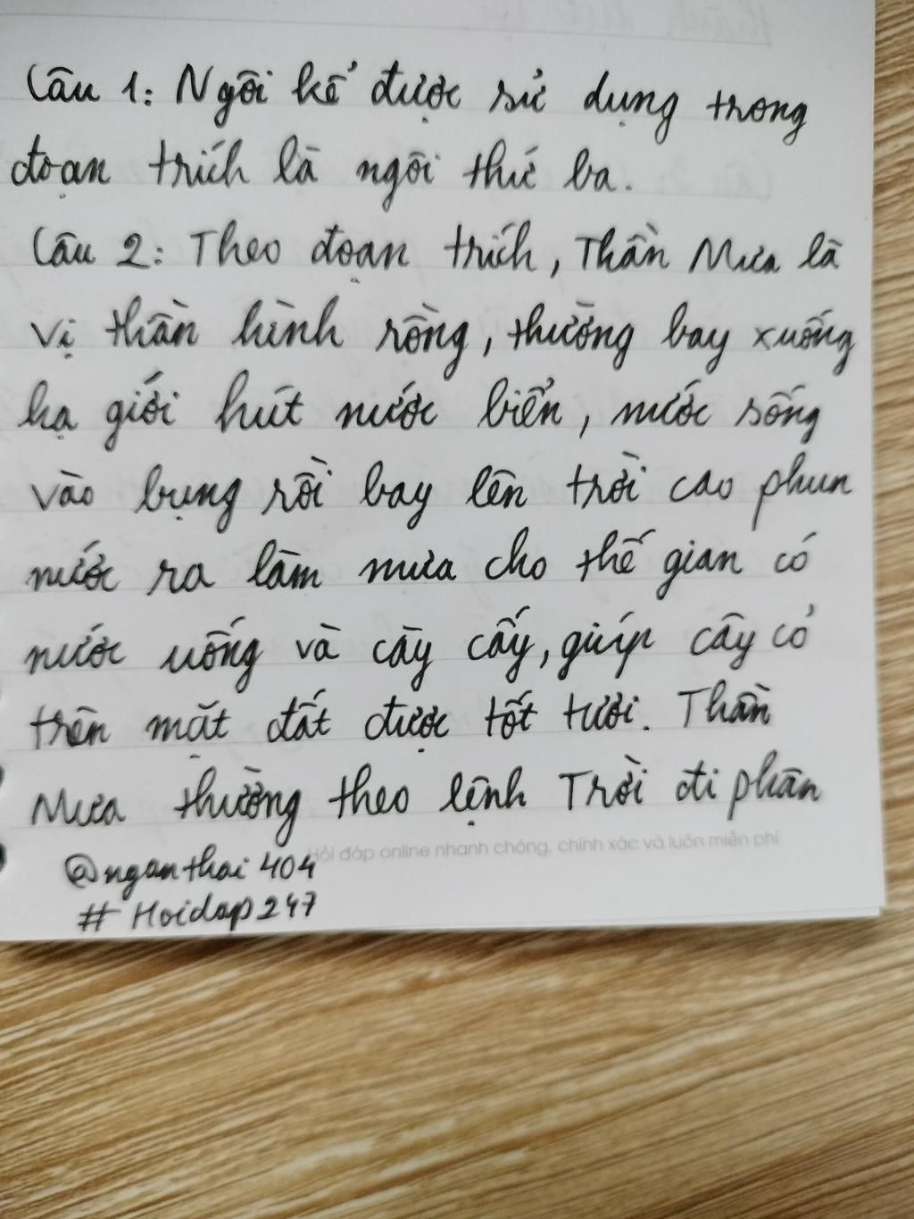 Câu 2: theo đoạn trích thần mưa có hình dáng tính cách và công việc như thế nào.