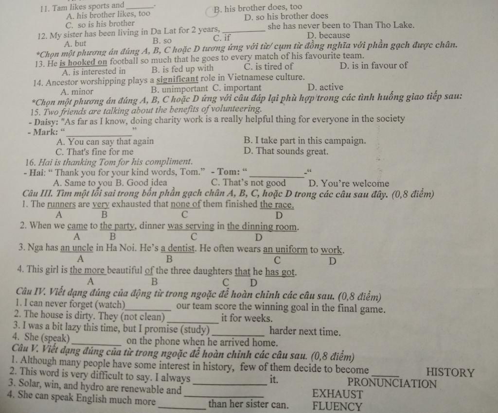*Chọn một phương án đúng A, B, C hoặc D tương ...