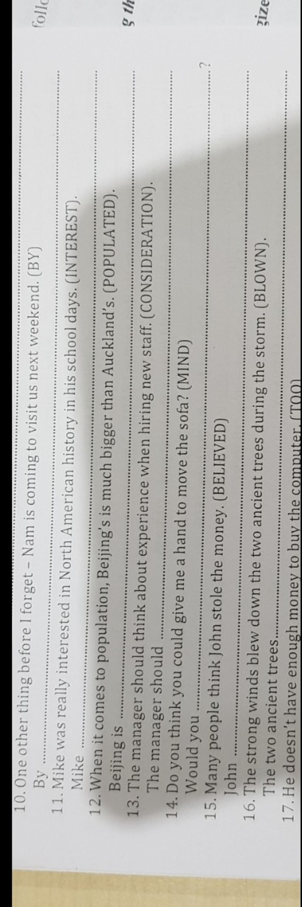 11. Mike was really interested in North American history in his school days. (INTEREST).