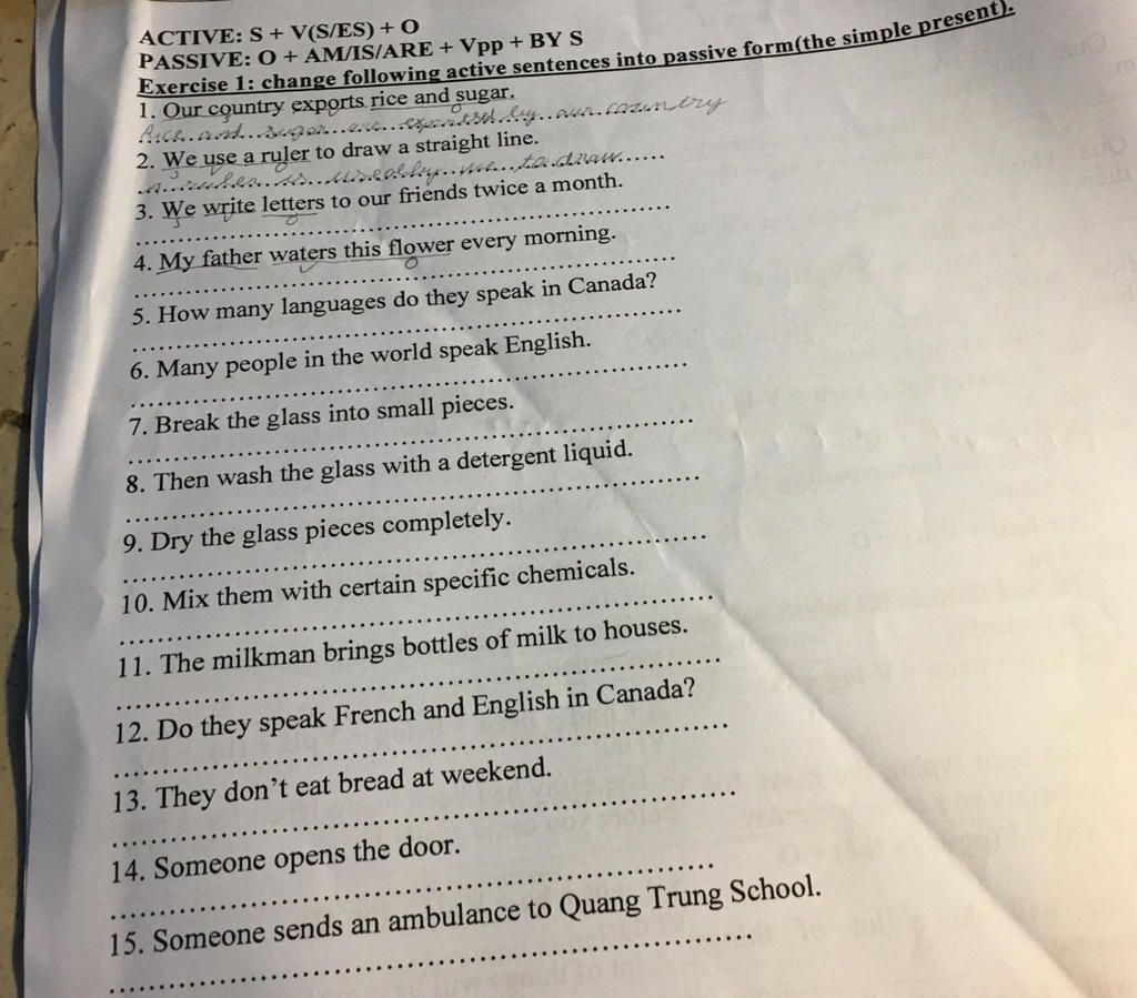 Exercise 1: change following active sentences into passive form(the simple present).