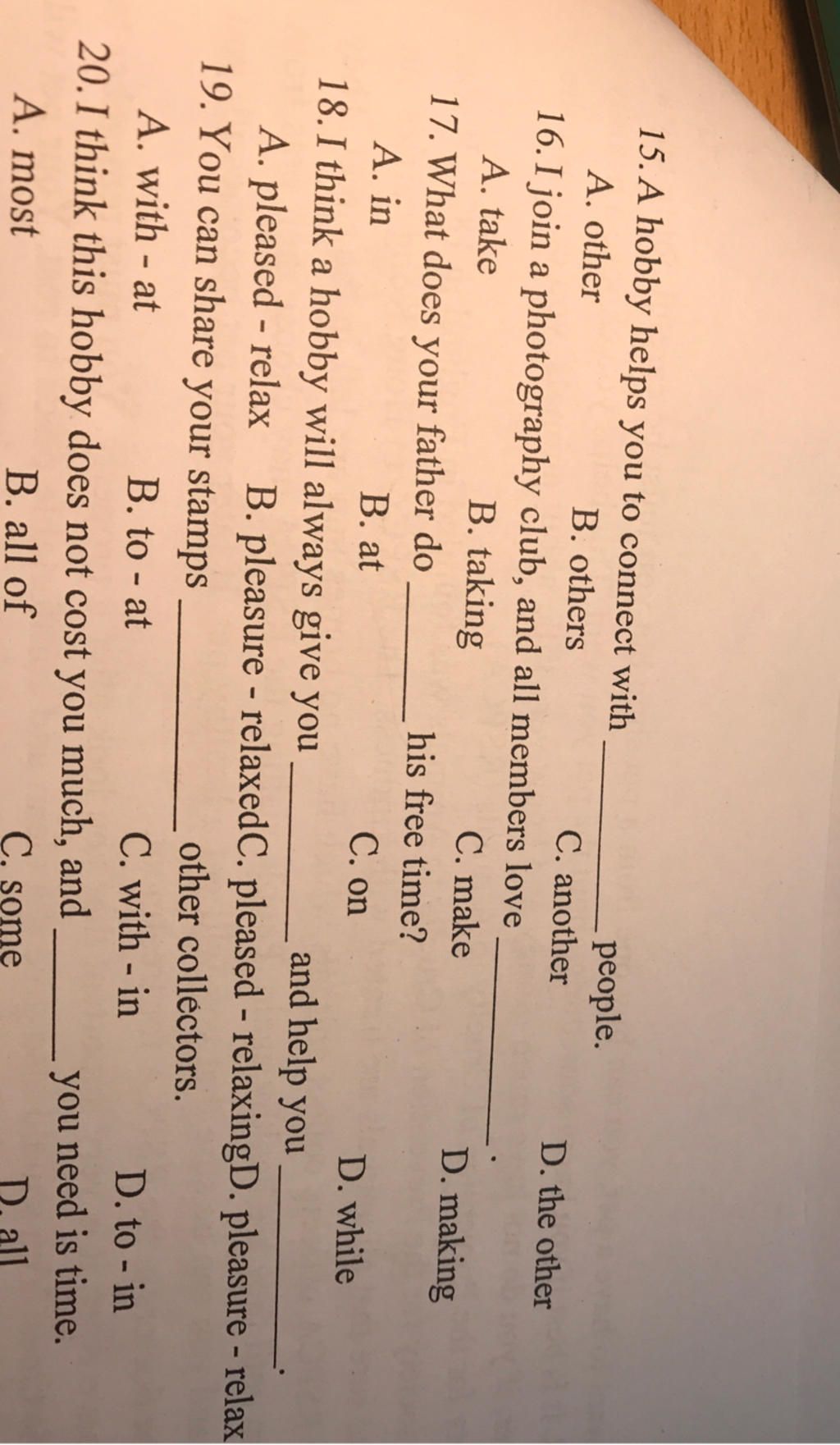 20, D : dịch tôi nghĩ sở thích này k lm bạn tốn kém , và tất cả những j bạn cần là thời gian