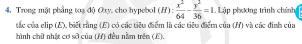 `(E)` có các tiêu điểm là các tiêu điểm của `(H)` nên:
