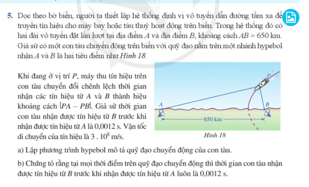 Gọi `t_1` là thời gian để tàu nhận được tín hiệu từ A, `t_2` là thời gian để tàu nhận được tín hiệu từ B thì `t_1 = (PA)/v , t_2= (PB)/v` với `v` là vận tốc di chuyển của tín hiệu.