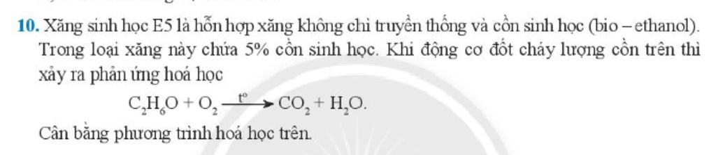 Vậy `C_2H_6O +3O_2 ` $\xrightarrow[]{t^o}2CO_2+3H_2O$